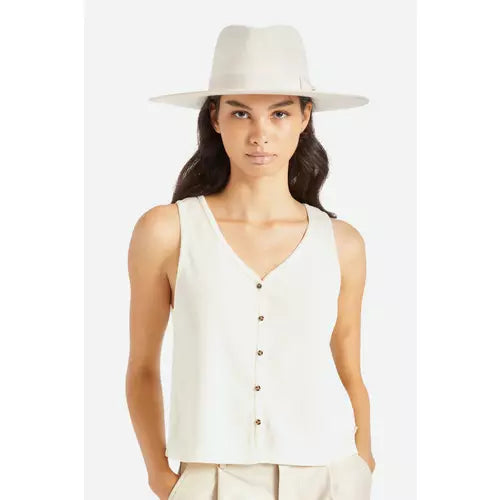 The Jo Rancher is a well-balanced hat with a wide brim, delicate pinch and teardrop crease. Made with structured and sustainable wool felt, it's a refined choice for outdoor events and elevating everyday. Finished with a fine grosgrain band and metal headwear plaque.